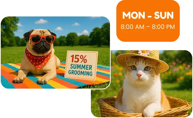 Hot days are here — and nothing feels better than a fresh, clean coat. Treat your furry friend to a stress-free grooming session right at your doorstep.